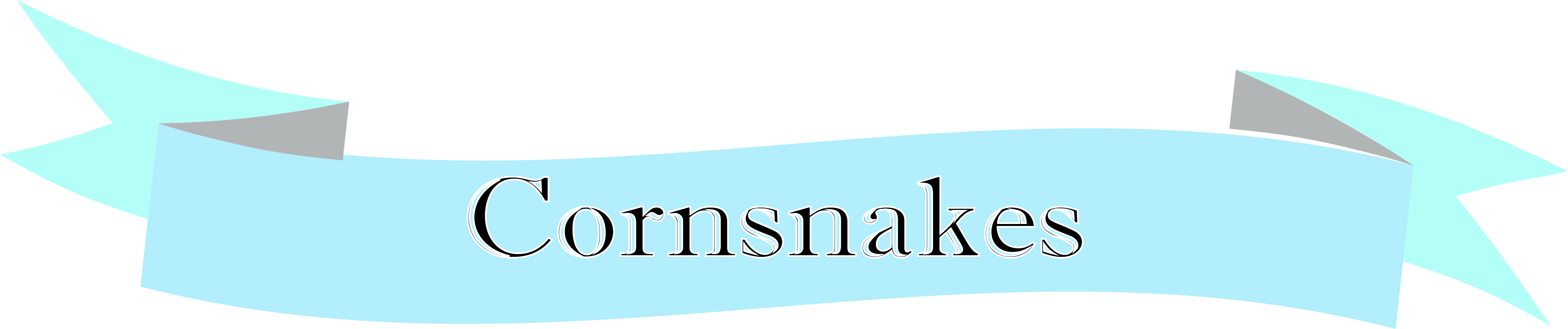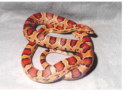 Habitat :- They can be kept in wooden vivaiums or glass/Perspex tanks but these must be secure as cornsnakes are notorious for escaping! They have a preferred daytime temperature of 28oC (82oF). This should be provided by an overhead ceramic (dull emitting) bulb, which should be attached to a thermostat and placed at one end of the vivarum to provide a temperature gradient (hot at one end cooler at the other). It is important to use a guard over the heater to prevent the snake coming into contact with it, which can cause nasty burns. Climbing branches or artificial plants can also be provided but should be cleanable or disposable for good hygiene. A water dish which is large enough for the snake to submerge itself in and a couple of hiding places should be provided within the vivarium. Although not as aesthetically pleasing as wood chips, Lino or reptile carpet, is advised for the floor as it is easy to clean and less likely to be ingested.