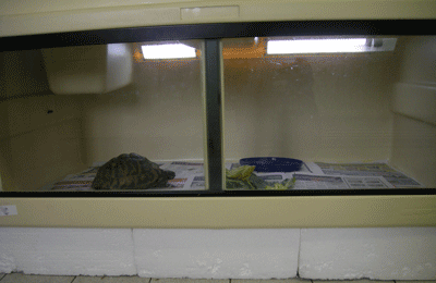 The Exotic ward is equipped with purpose built vivaria for Reptiles and suitable cages for all sizes of Birds. The room is maintained at a higher than normal rom temperature and the vivaria have their own heaters and Full spectrum (including UV) lights.
